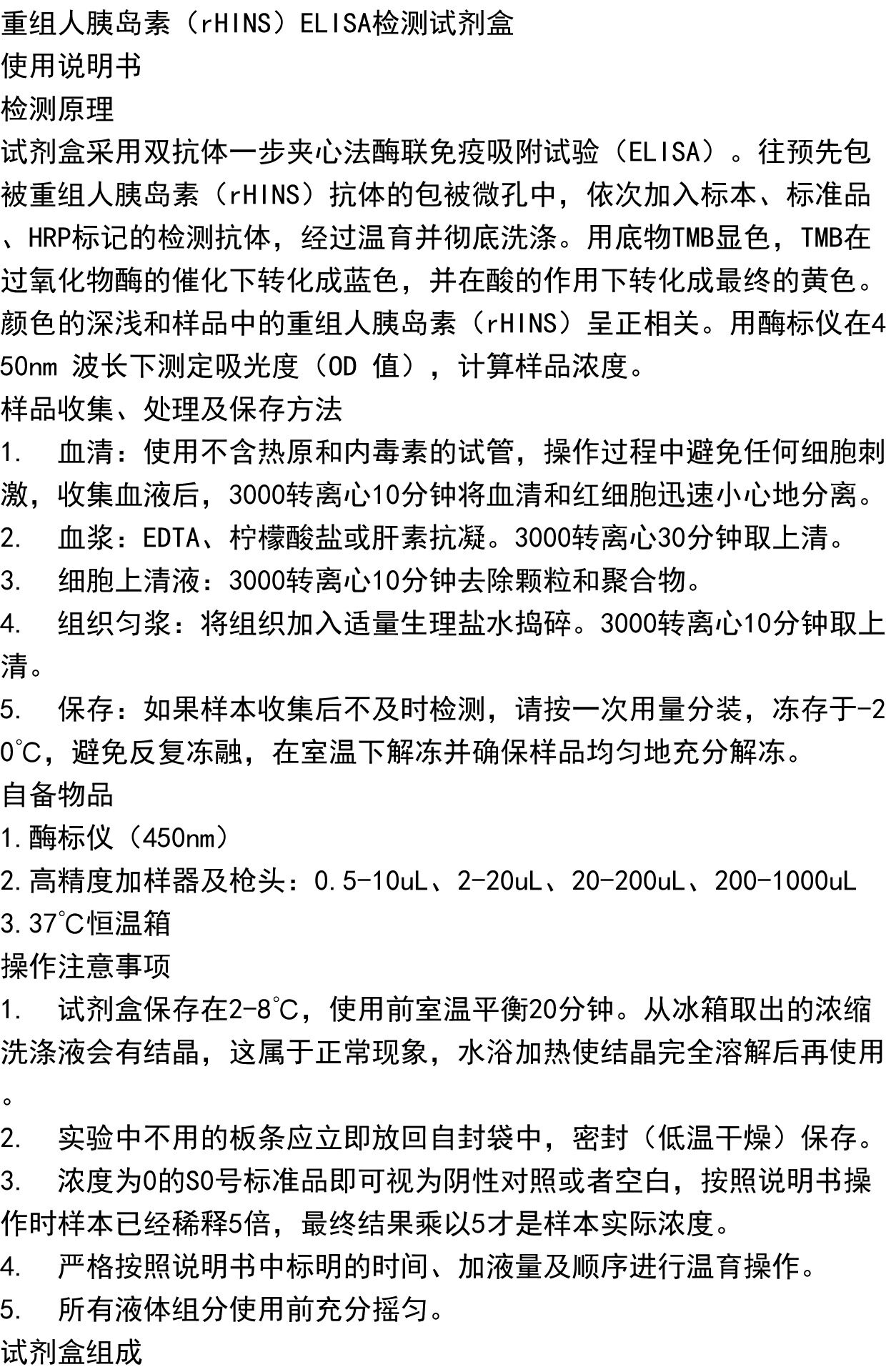 重组人胰岛素(rHINS)ELISA检测试剂盒