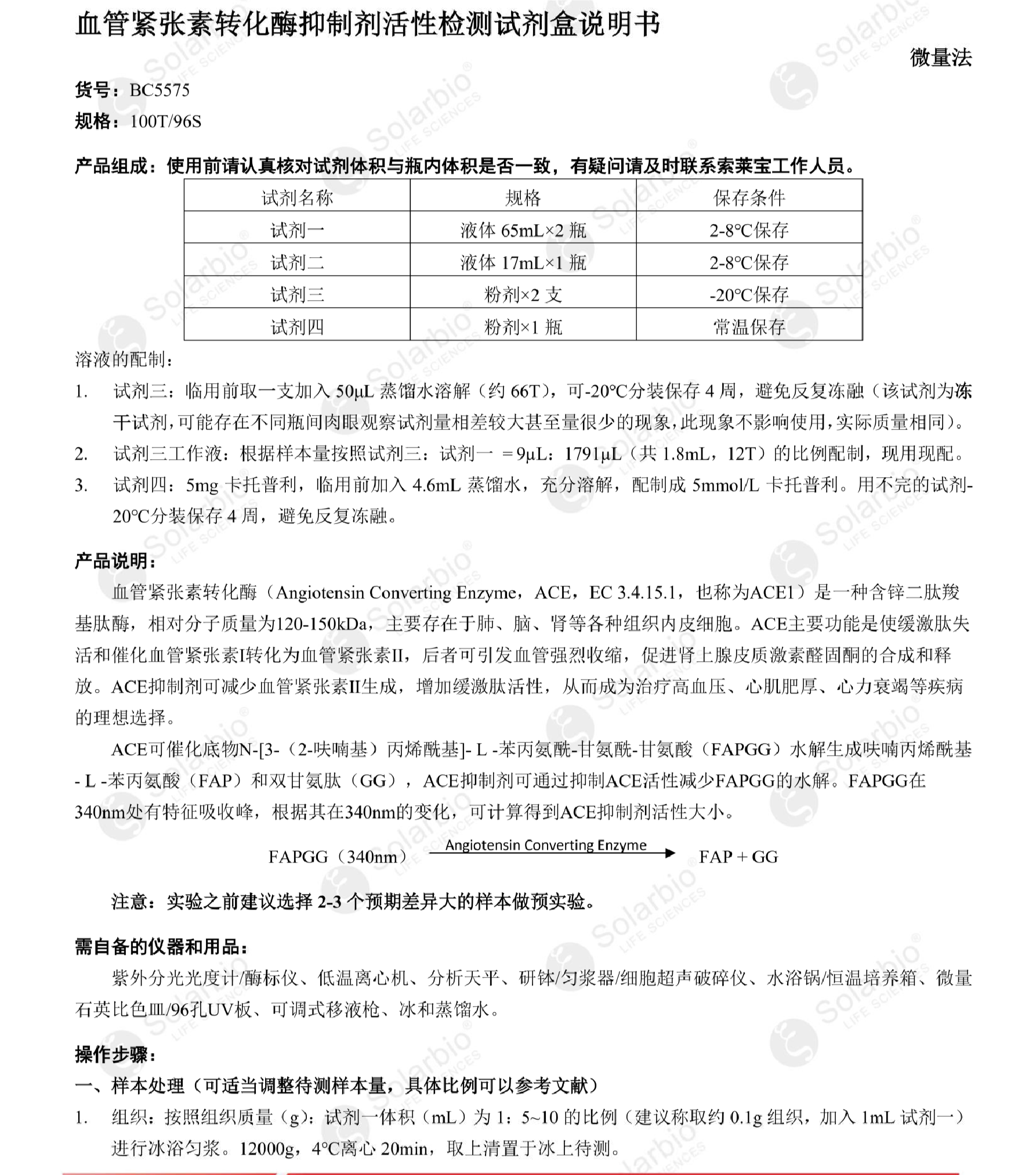 血管紧张素转化酶抑制剂活性检测试剂盒