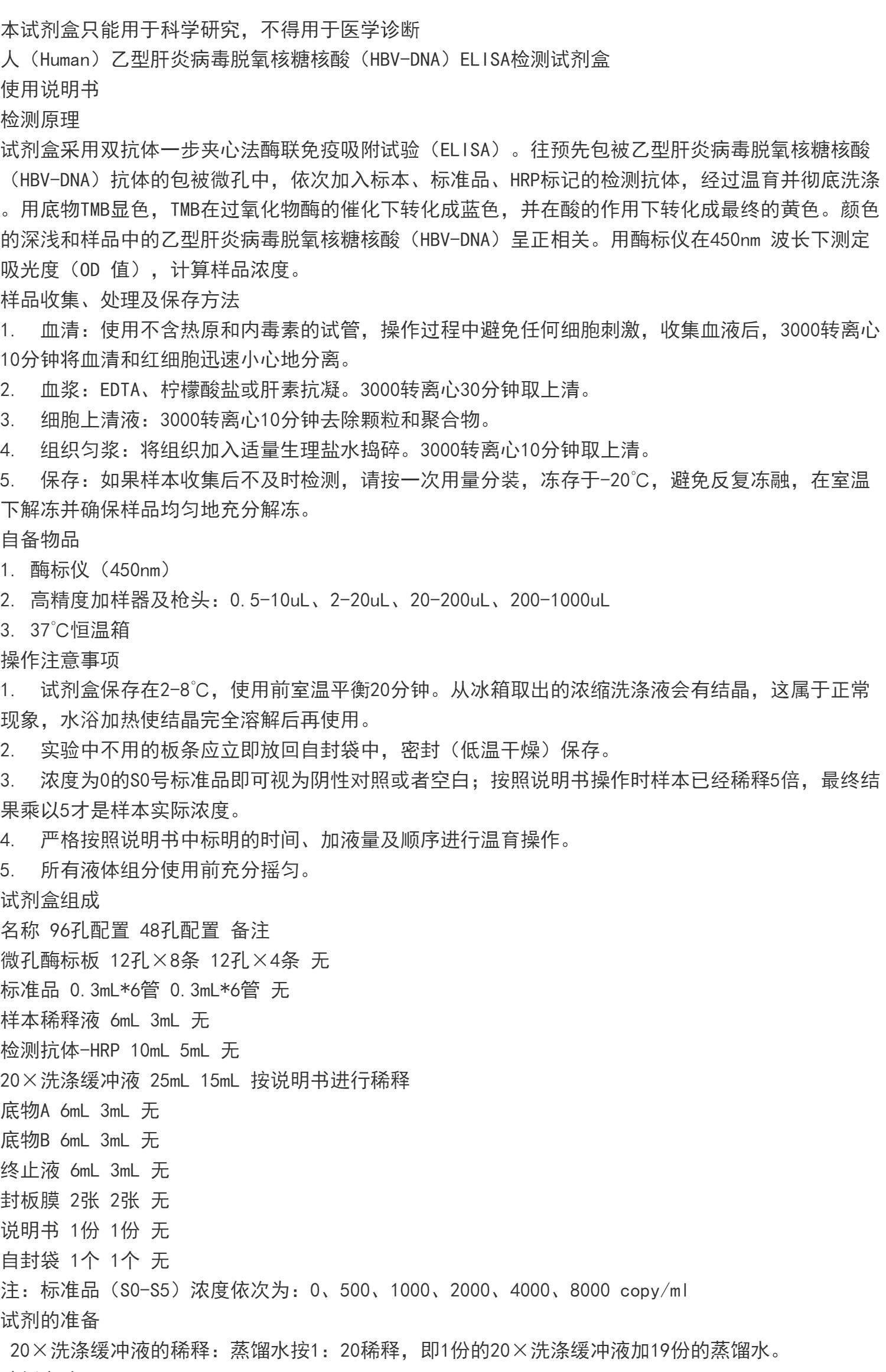人 乙型肝炎病毒脱氧核糖核酸(HBV-DNA)ELISA检测试剂盒