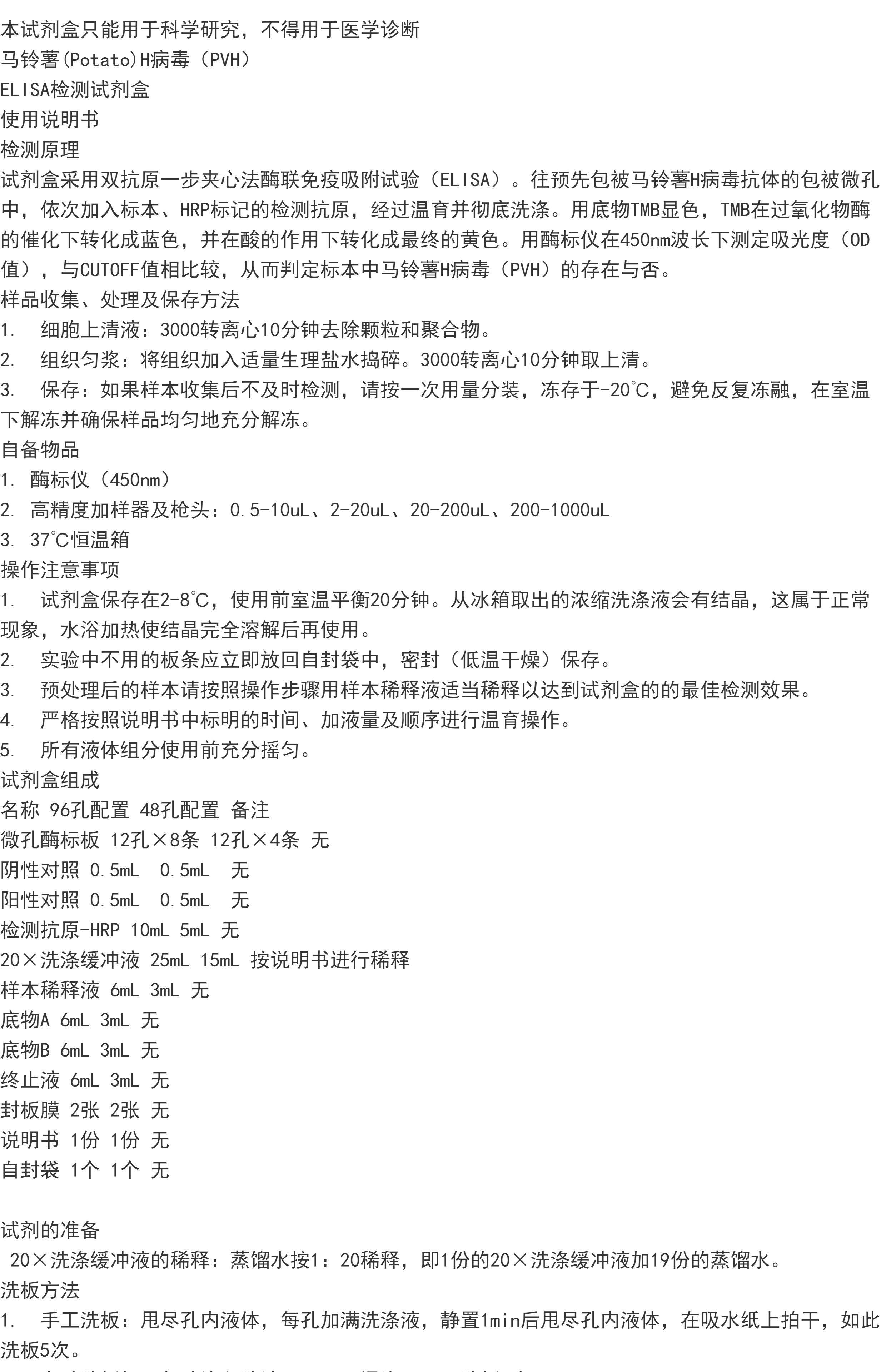 马铃薯(Potato)H病毒(PVH) ELISA检测试剂盒