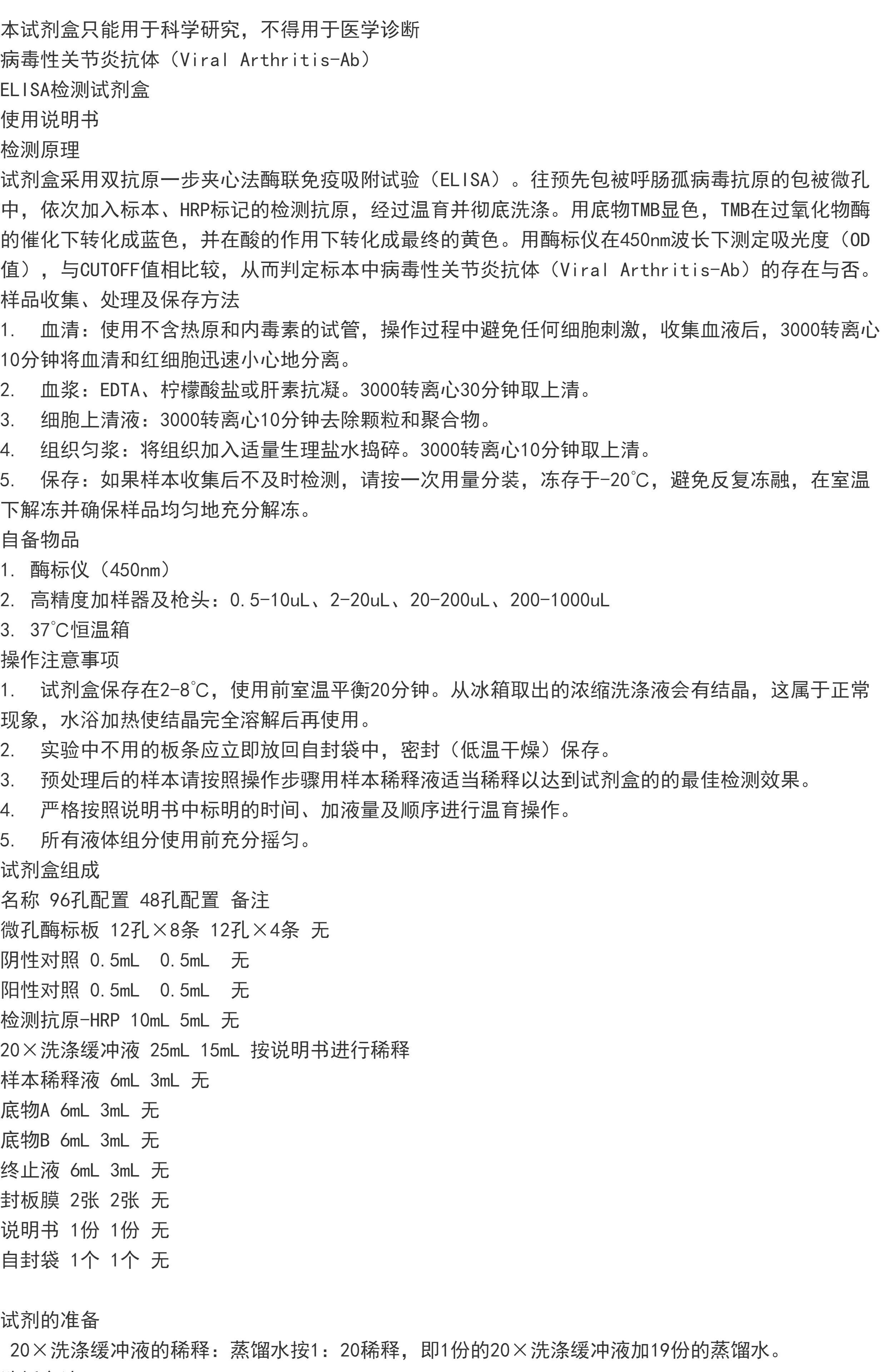 病毒性关节炎抗体(Viral Arthritis-Ab) ELISA检测试剂盒