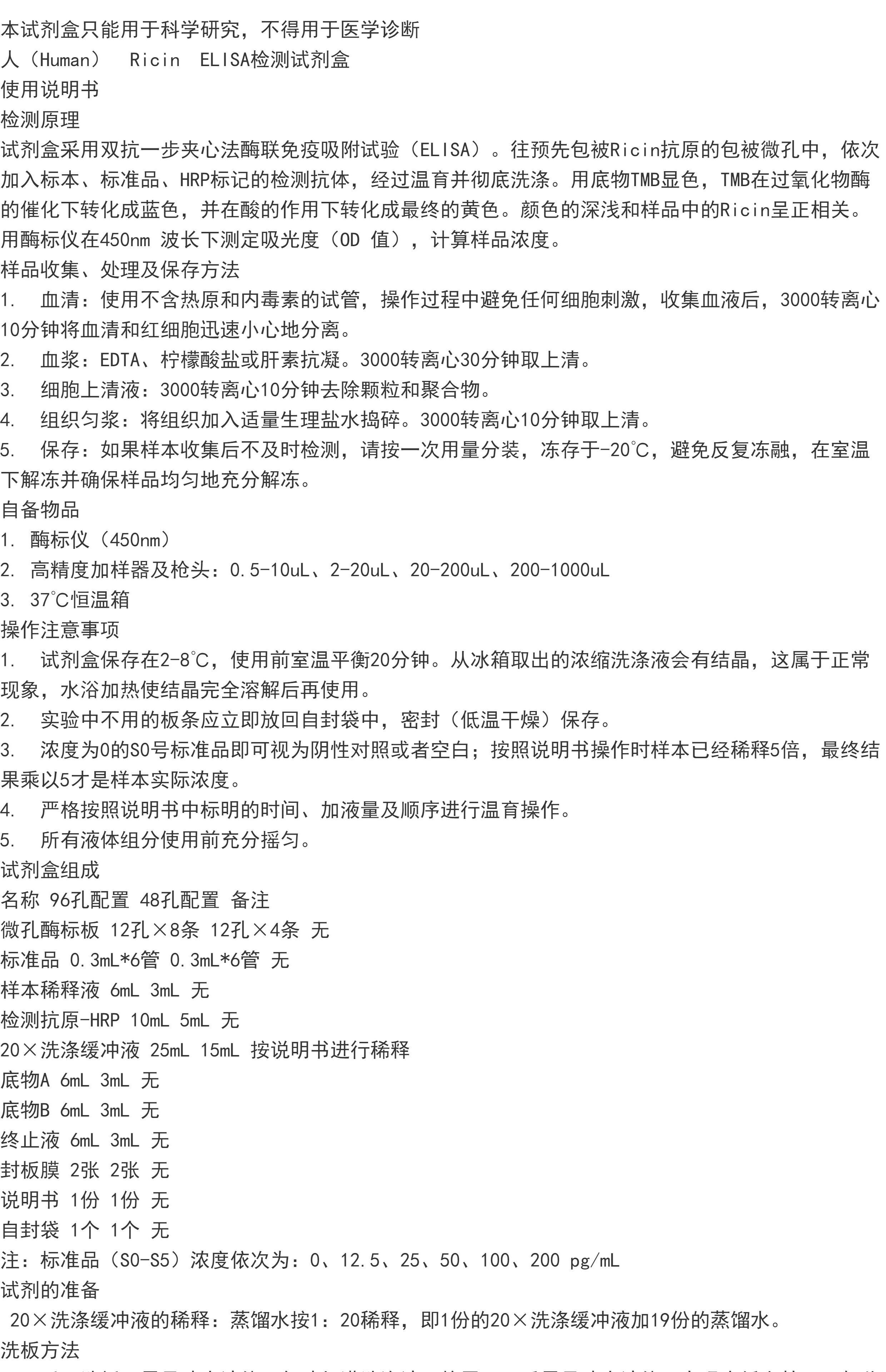 人(Human) Ricin ELISA检测试剂盒