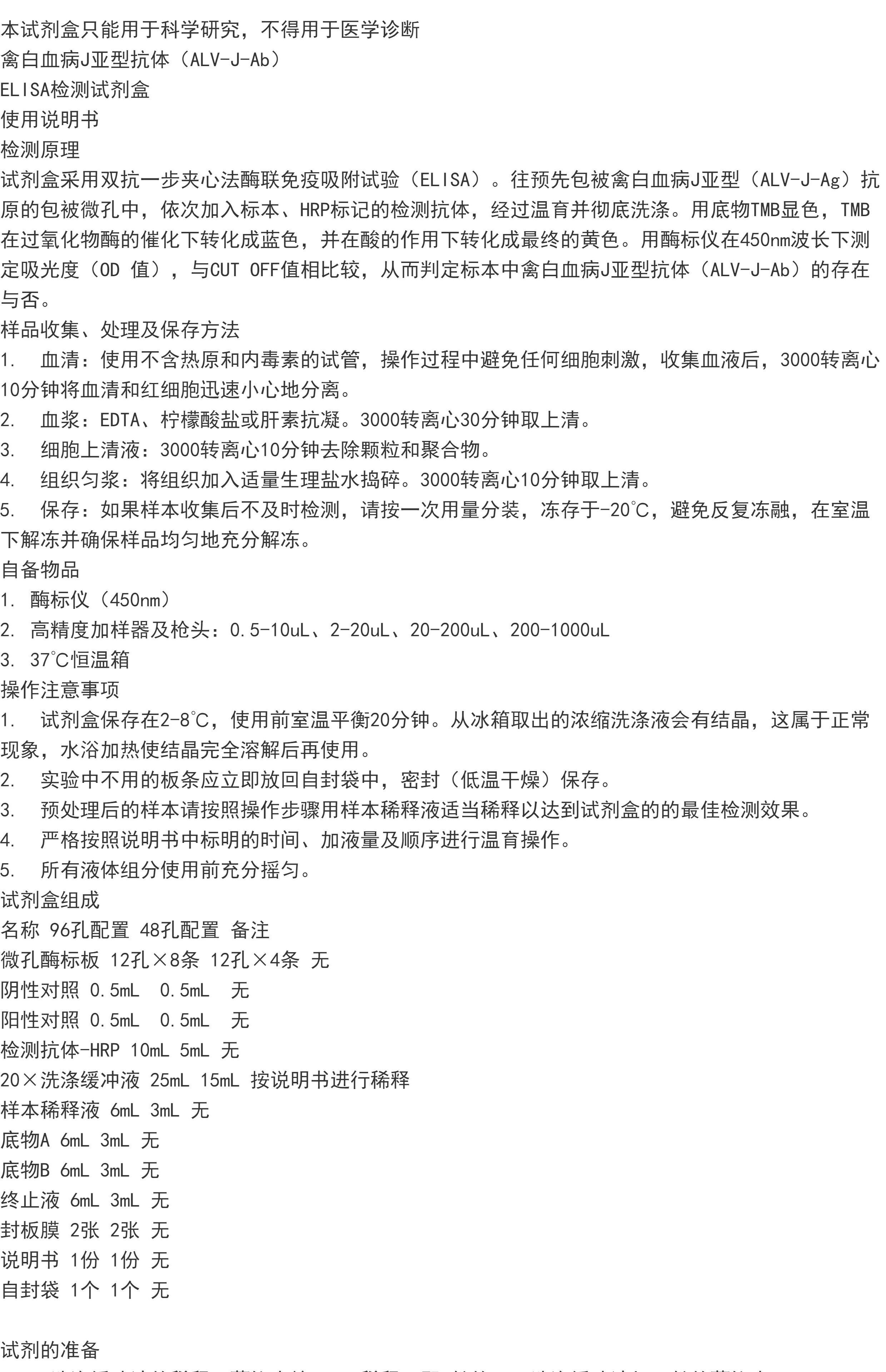 禽白血病J亚型抗体(ALV-J-Ab) ELISA检测试剂盒