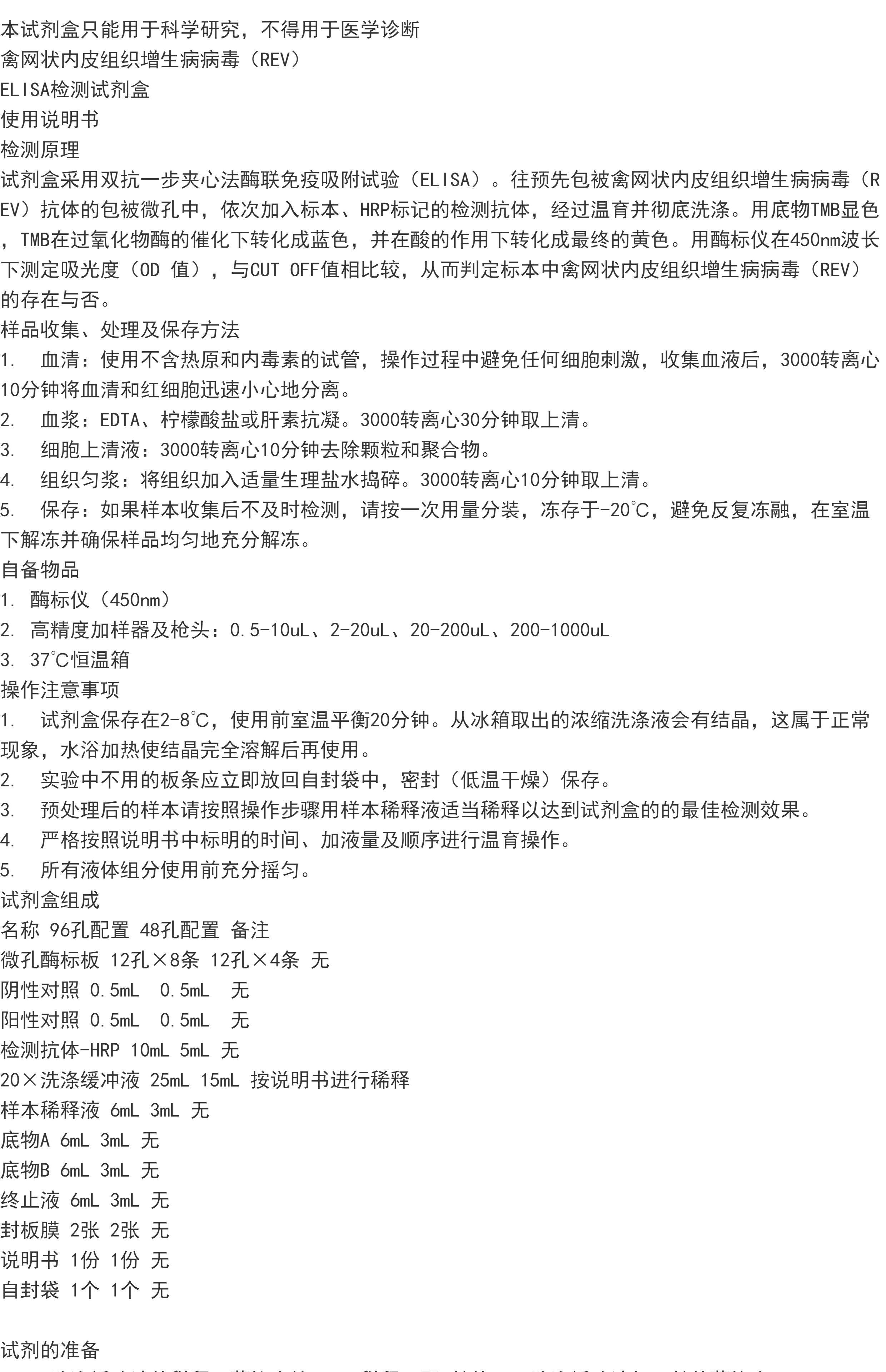 禽网状内皮组织增生病病毒(REV) ELISA检测试剂盒