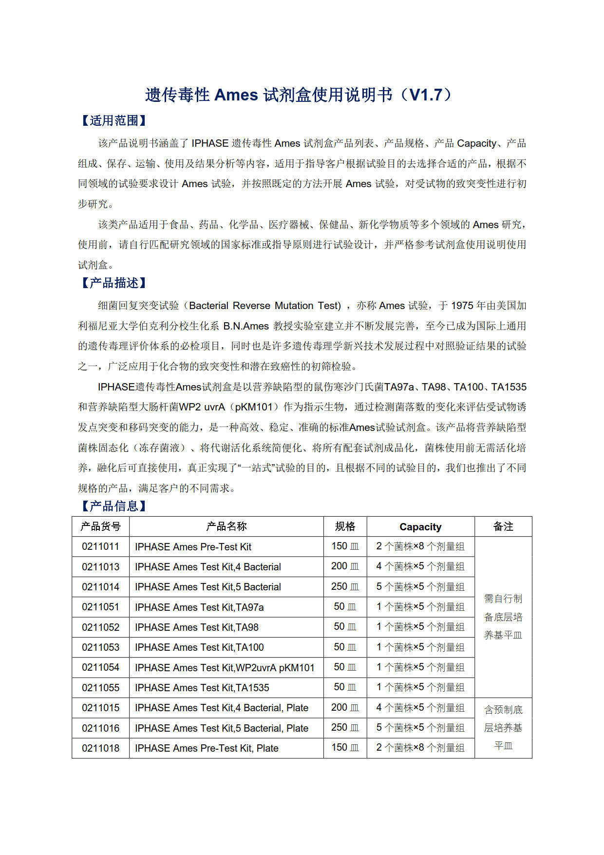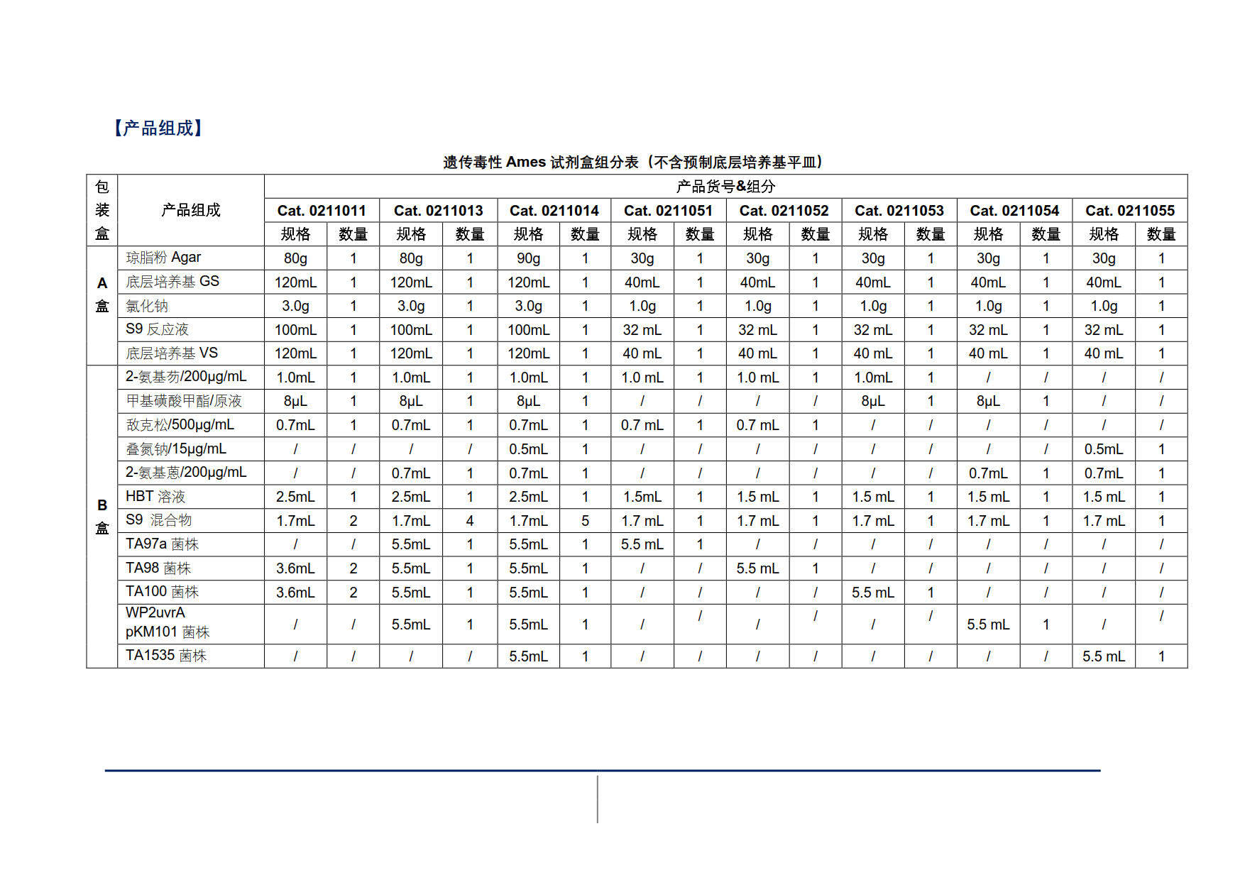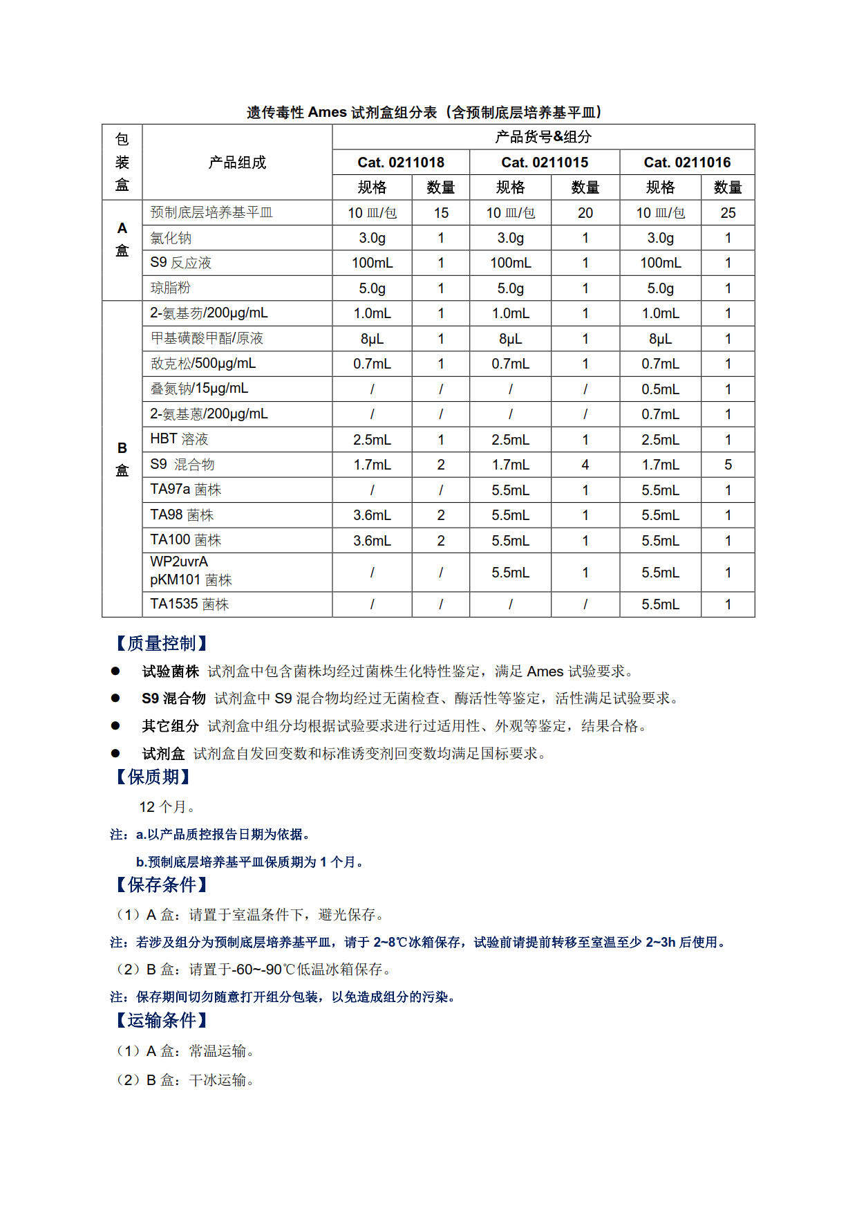 • 遗传毒性 Ames 试剂盒(AMES试验) TA97a TA98 TA100 TA1535